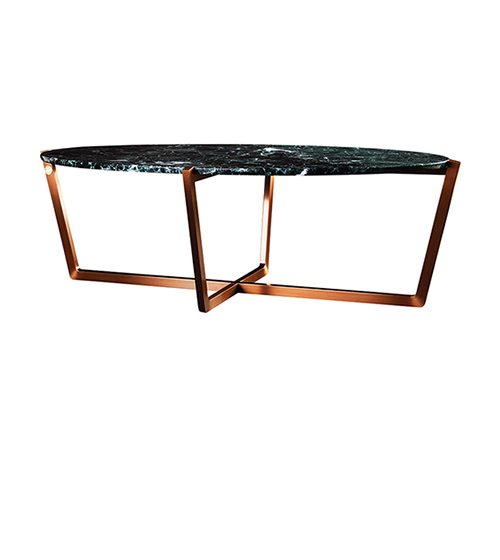 交叉的框架以四个支撑点的金属向上延伸至桌面,以保证大理石桌面的稳定性,全面展示精心挑选漂亮纹理的大理石及桌面边缘的倒角工艺。给人流畅优美的外观。此外,框架边缘也被抛光,并有倒角处理工艺,以避免锋利及细节瑕疵的存在。